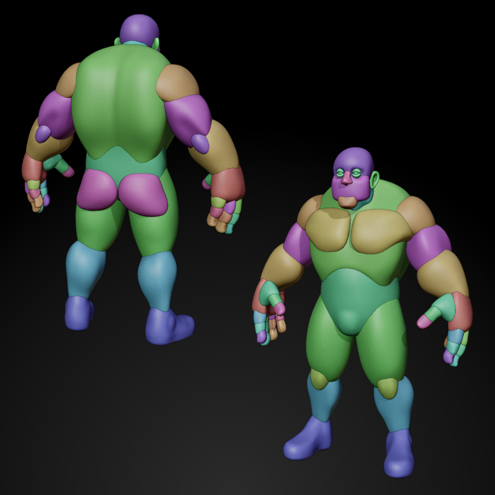 A high-poly, stylized character base mesh of a bulky, muscular human to get you started on your next character! The modular composition makes it easy to adjust proportions and create new character shapes quickly!